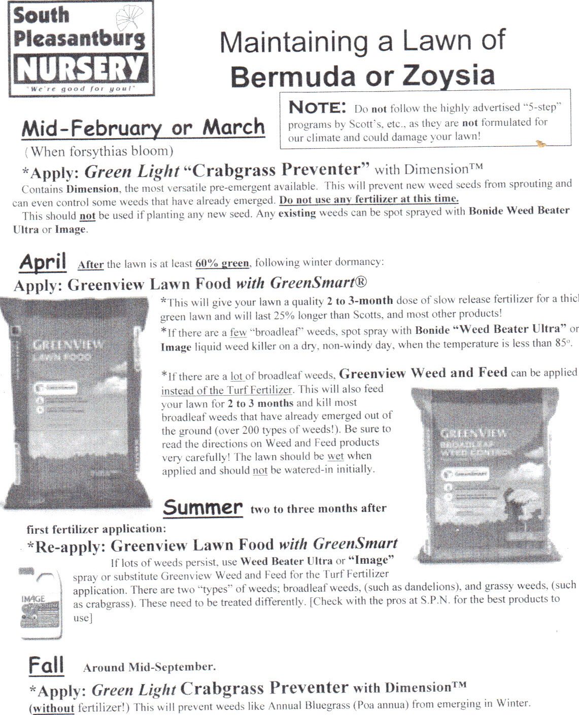 We have a great sheet you can print out and follow on how to keep your warm season turf looking spectacular year round!