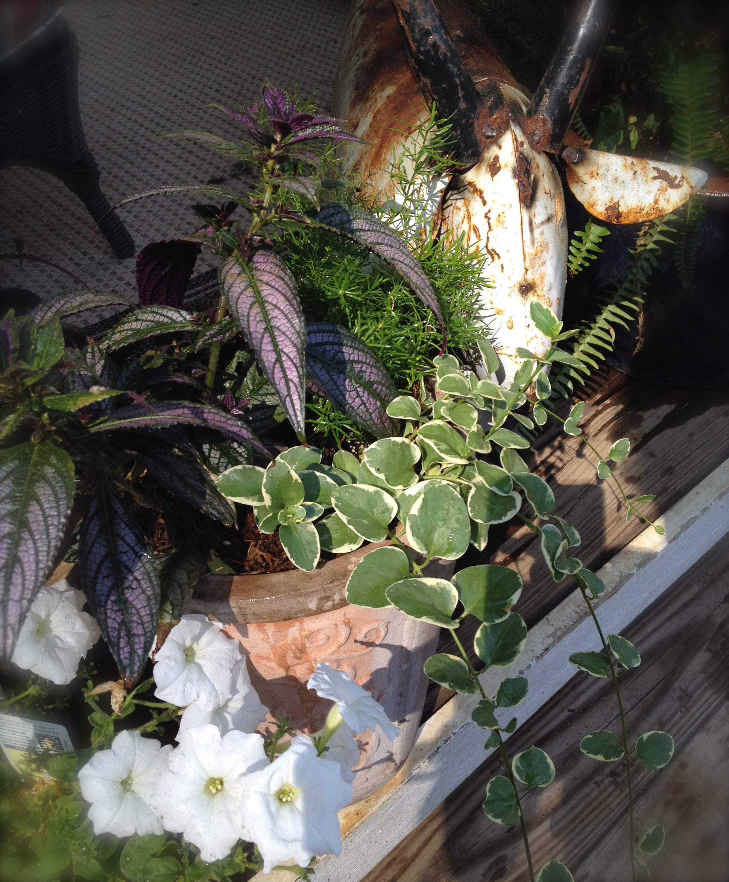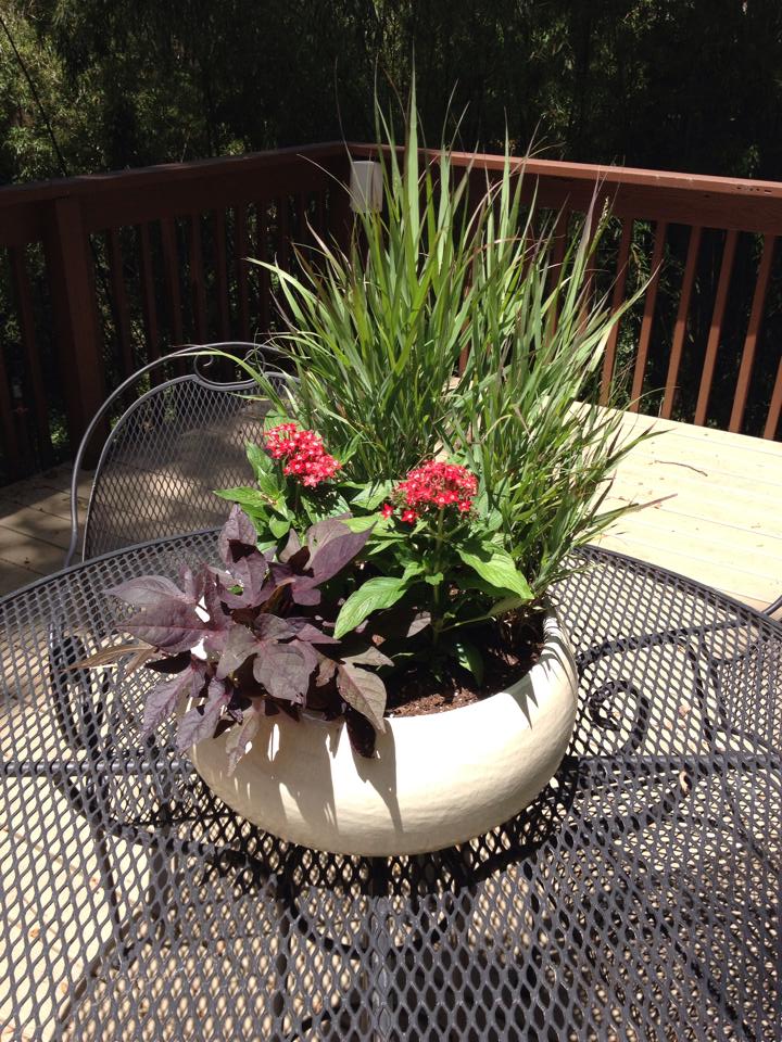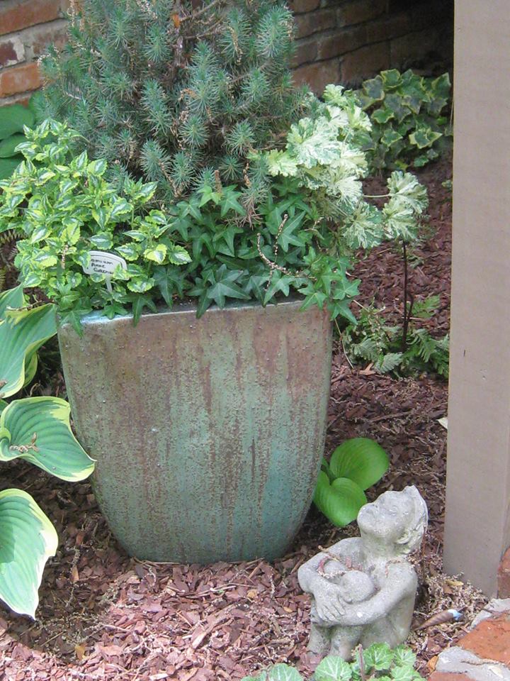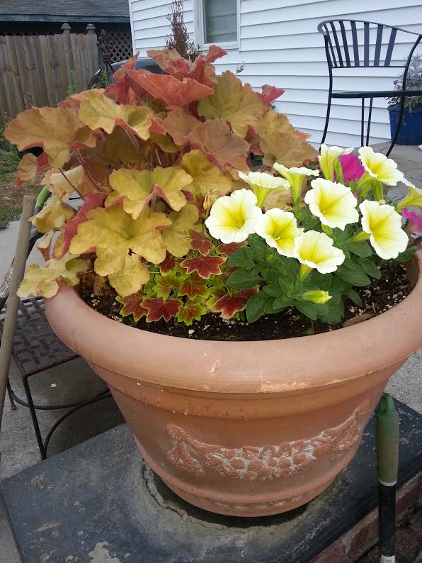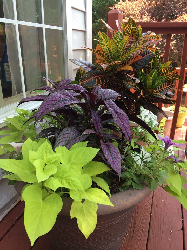 This is a very unique container with fantastic coleus popping out at you. See, you don’t need gobs of flowers to make a pretty container.