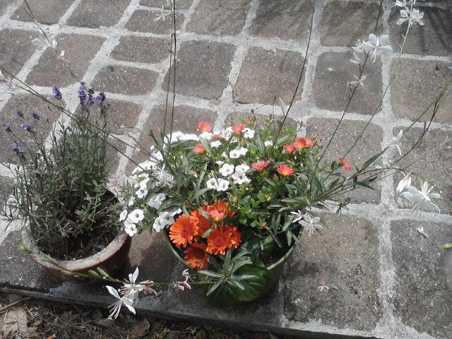 Cheryl M. Using a metal trellis to have the mandevilla grow up is a superb idea. Excellent job!