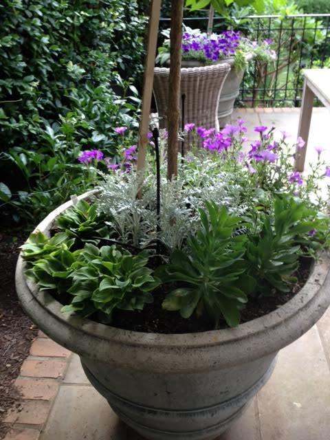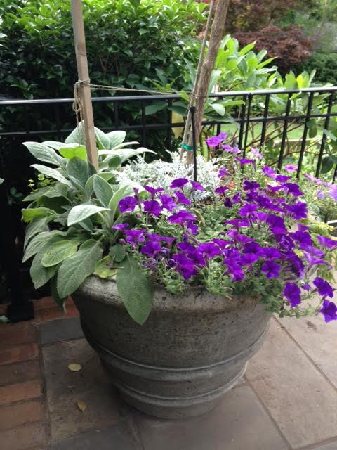 Lambs ear is great for this pot! They don’t have to be planted every year and give a great soft appearance to combination!